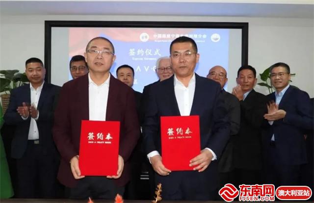 东侨经济技术开发区管理委员会主任吴新情(右)、澳大利亚LAVO氢能科技公司董事长孙九胜(左)签订战略合作协议