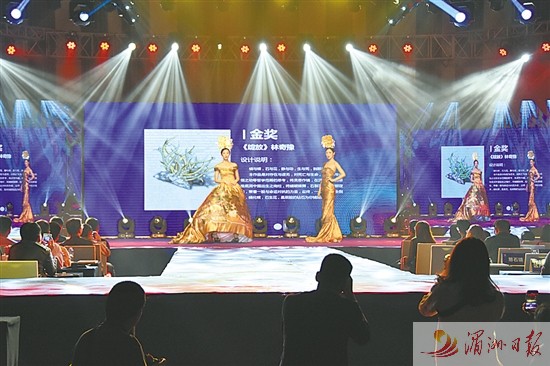 图为大赛颁奖典礼上,模特展示获奖作品。