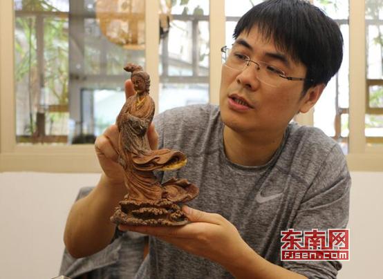 林建军创作的钱四娘雕像模型 现在,林建军正在创作另外一件和木兰溪治理题材有关的作品,他要创作一尊钱四娘木雕像。这尊雕像的身高将被设定为1.6米,以此向这个在16岁时便变卖家产带头到莆田拦溪筑坝、造福当地百姓的少女致敬。在作品的选材上,林建军则瞄准了莆田本地的龙眼木。“以前,大家的生活比较穷困,很多家庭甚至就靠一棵龙眼树的收成过生活,可以说龙眼树也哺育了莆田人民,这也是艰苦耐劳、坚韧不拔的莆田人民的一种精神写照。”林建军说。 “艺术只有来源于人民、服务于人民才有价值,好的作品应该留下时代烙印,才具有生命力。木兰溪题材作品的创作以后应该会越来越多。”林建军说,他将用手中的刻刀,不断创造出富有感染力的作品,讲好莆田故事、讴歌家乡风情。 |