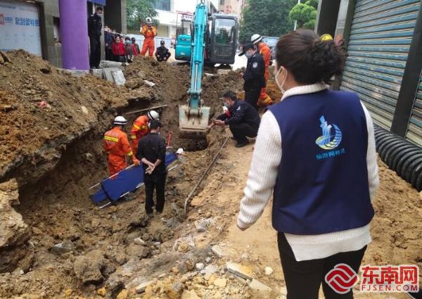 救援现场 东南网莆田3月17日讯(本网记者 江瑞鑫 通讯员 谢晶晶 张雪贞文/图)3月17日上午,仙游鲤城街道鲤中步行街鲤中电影院附近,一名工人在修路施工过程中遇塌方,不慎被埋。鲤城街道综治(网格)中心获悉后第一时间赶至现场,协助县消防大队成功救出被困人员。 据悉,当天上午,该路段正在进行道路修补维护工作。由于该路段土质较为疏松,挖掘机挖掘过程中不慎引起道路塌方,导致站在塌方位置上的一名工人意外被埋。被困工人的工友见状立即拨打119、120电话,请求救援。正在鲤中附近巡逻的街道综治(网格)中心巡逻员、网格员闻讯也立即赶至,三方力量齐聚,立即对被困工人展开救援。 经过40多分钟的紧急救援,被困工人被成功救出。救出时,该名工人仍有意识,街道网格巡逻员第一时间协助医护人员利用担架将被困工人抬上救护车,送往医院进行救治。 据了解,该名工人目前健康状况良好,无生命危险。