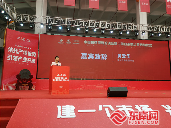 中国茶叶流通协会会长王庆致辞 黄爱华、林旭阳、陈绍军、王庆等先后致辞。他们表示,福建省茶产业历史悠久、文化底蕴深厚、名茶品类繁多,此次活动的举办正是政和县主动融入福建茶产业发展和“武夷品牌”建设工作中的重要实践。他们希望,通过中国白茶城落地福建政和,构筑文化、产业、科技融为一体的中国白茶产业发展新高地。 政和是因茶得名,素有“中国白茶之乡”之美誉。全县茶园面积达11万亩,2020年全县产茶1.63万吨,产值16.22亿元,种茶农户占农户总数的75%以上,农民一半以上收入来自茶叶,茶产业成为当地农民脱贫致富奔小康的一项支柱产业。