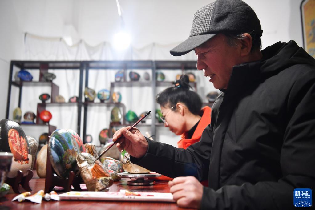 农历虎年将至,陕西省西安市鄠邑区的农民画家以石材为画布,创作虎主题作品迎接新春佳节。
