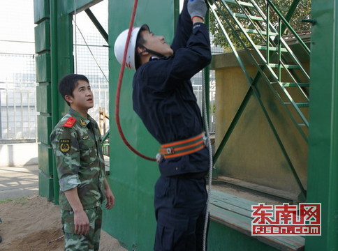 特警队员向消防官兵学习爬绳