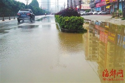 不仅辅道积水,主道也有一段受淹 东南网-海峡都市报5月16日讯(记者 李伟强 马俊杰 文/图) “只要有下雨就会有积水,辅道跟河道没什么两样,能不能一次性解决积水问题?”昨日,多位读者致电本报,称昨日一场大雨过后,莆田324国道西庚小区路段七八百米辅道被淹没在积水中,近千米的辅道成了“河道”,由于看不清路况,不少车辆选择掉头绕行。莆田住建局表示将派抢修队前往查看处理,市民希望有关部门应想办法彻底解决该路口积水问题。 现场:路被淹车辆不敢通行 昨日上午9时许,降雨逐渐减小,记者从学园北街沿着西庚小区前往下店路,在西庚小区附近,几部行驶至324国道路口的私家车突然停住,随后掉头离开。司机林先生说,前面积水很深,他车子底盘太低不敢过去,只好掉头。 往前一看,一条五六米宽的“河道”挡在眼前,辅道已完全被淹没,辅道边的绿化带也都浸泡在水中。每当有车辆经过,就会溅起高高的水花。记者发现,受淹辅道从东圳路与324国道交叉路口一直延伸到西庚小区的北侧,总长约有七八百米。辅道上一些井盖不断有水冒出,往低处流走。 由于辅道积水过多,不断外溢,一段长约50米的机动车道也受淹。附近店家说,小区与324国道交叉路口处的积水最多,也最深,约有40厘米深,摩托车和电动车基本都不敢从该路口经过。 |