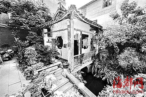 水榭凌空在小池上,造型别致 【“猪脚套猪肚”形状的园林池你见过吗?点击进入社区谈谈你的看法】 东南网8月7日讯(海峡都市报记者 陈小芳 马俊杰 文/图 实习生 陈赛妹)你可曾见过“猪脚套猪肚”形状的园林池?在莆田市区双池巷就有这样一座园林池,始建于明成化年间。由于主人的细心保护,虽然经历了400多年的岁月侵蚀,园林原貌仍清晰可见。目前,其是莆田市区内唯一的一座古园林池,文物专家称其为古代闽中园林的典型。 园林池是后花园古时女眷在此游憩 昨日上午,记者来到荔城区镇海街道办英龙社区居委会区双池巷73号的宋家大宅,记者见到了这座古园林池,主人宋葆璜正在园林池上的水榭内休息。 园林池占地约200多平方米,植物茂盛。在老人的指引下,可以看出园中池平面形如猪脚和猪肚,池为猪脚和猪肚形固岩,池中一条石桥堤通道把池分隔成东西双池。在池子北端之上是一座水榭,遗留的美人靠雕琢精美。池畔有明代亭基石刻横梁,沿池假山叠石、水阁临流、石桥跨水、图画天成。 宋葆璜称,祖先起源于商朝,后由河南迁移至莆田,这座宋家大宅,历经了十几代人。 大宅占地近500平方米,原有3个天井,7厢房,园林池为大宅后花园,是当时小姐们的读书游憩之所。据了解,因为年岁较久,厢房成为危房,经部门规划,2002年宋家重盖了一座5层大楼,但园林池的原貌得以保存。 |