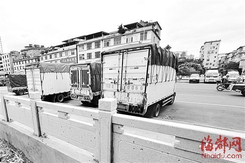 、 桥面两边的机动车道上停放了许多货车 东南网8月21日讯(海峡都市报记者 吴智飞 马俊杰 文/图)近日,不少莆田市民向本报反映,G324国道天九湾市场路段有十余部货车常年停在机动车道上,整个路面变窄。经反映,警方到场处理违规停放车辆时,司机却拿出收据,称一直在向当地辖区交停车费。然而,收据的开具者不知所踪,当地辖区南门社区居委会表示将调查。 事发天九湾市场路段;南门社区表示将调查 六车道桥面货车占了两车道 G324国道天九湾市场路段,下磨溪穿过的桥面上停放着一些货车。昨日上午,记者在这个路段看到,共有8部货车横停在机动车车道上,货车上挂着“空车配货”的广告,司机们在驾驶室里聊天。 据观察,G324国道经过路面改造后变成了双向六车道,横停的货车占走了两个车道。当地的住户赵先生说,早上货车停放最多,路两边最多的时候接近20部。“早上的时候天九湾市场生意很好,不少市民都要从这里路过,货车占道很危险,指不定哪天会酿事故。”赵先生说。 在这个路段经营一家五金店的陈先生说,这些货车几年前就开始停在桥上,等有需要运货的人过来叫。 |