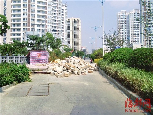 施工人员昨日告诉记者,将立刻清出一条通道 东南网10月22日讯(海峡都市报记者 吴智飞 文/图)昨日,莆田市民杨先生向本报反映,延寿路新车站路段一条辅道被一大堆的石条堵住,过往的电动车、自行车只能由机动车道上走,十分危险。 昨日上午,在延寿路新车站路段往天妃路方向的辅道上,记者看到一大堆石条杂乱地堆叠在一起。整条辅道约6米宽,已被石条全部堵死,不留空隙。 一些电动车、自行车行至石条堆边时才发现辅道已被堵死,无奈只好掉头走机动车道。“不知道是哪里来的石堆,直接卸在路上,这也太不负责任了。”路过的市民陈先生说。 在石条堆边的桥上,记者看到一座临时搭建的工棚。市水利局的工作人员介绍,这里正在进行清淤施工,将在河中铺设污水管道,石条在砌护坡时用。 施工人员介绍,这个河段的铺设过程可能需要一个月时间,由于附近都没有空地可卸放建筑石条,才暂放辅道上。施工人员表示,将立刻清理出一条通道,让辅道恢复通行。 |