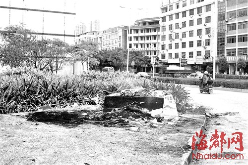 绿化带上烧垃圾 莆田天妃路附近草坪被烧成灰