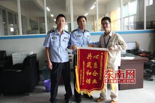 秀屿公安分局禁毒大队获赠锦旗 东南网莆田12月21日讯(通讯员 陈莉莉 林志胜 文/图)近日,为了感谢莆田市公安局秀屿分局禁毒大队对企业的优质服务,鞍钢冷轧板(莆田)有限公司采购部主管一行特地到秀屿禁毒大队送上一面绣有“心系企业、共筑和谐”的锦旗,向帮助和指导改善该企业易制毒化学品日常管理表示感谢。 |