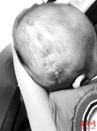 如今小涵头上的疤痕仍然清晰可见 东南网12月31日讯(海峡都市报记者 陈丽明 文/图)今年4月份,莆田市涵江区的傅女士在荔城区一家医院内产下一子。婴儿出生之后,家属在其头部发现一血肿,医生使用云南白药外敷。连续多天,家属见血肿不断增大,便将婴儿转入莆田学院附属医院诊治,医院检查竟发现婴儿因颅骨骨折致颅内出血。经过多番抢救,孩子终于出了院。不过,家属质疑婴儿之所以出现颅骨骨折,是由于当时接生医生的操作不当所致。 婴儿虽抢救过来今后仍需多次手术 据李先生介绍,今年4月23日下午,他妻子第二胎足月临产前往大洋乡卫生院分娩,卫生院急诊科联系了荔城区一家医院,傅女士随后入住该院妇产科。当晚,男婴小涵(昵称)出生。次日凌晨,家人在看护孩子时发现,孩子头部有一血肿,医生用了云南白药外敷处理,不过症状并未改善,血肿不断增大。 4月25日晚,男婴被转入莆田学院附属医院新生儿科,入院检查竟显示小涵头部的血肿是由于颅内骨折引发出血。次日,医院就下发了病危通知书。之后,小涵转到福建医科大学附属第一医院,经过3次手术,孩子终于脱离生命危险。不过由于部分骨折碎片尚未取出,今后仍需多次手术。 李先生告诉记者,在妻子怀孕期间,曾对腹中婴儿进行过产前彩超检查,当时显示孩子的颅骨光环完整,颅骨正常,为何出生之后却出现颅骨骨折,他们怀疑,是接生医院的医生操作不当,才导致婴儿颅骨骨折。 |