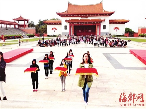 试装的舞者头饰是古典的湄洲女发髻,跳的是融入莆仙戏元素的八佾舞 东南网4月2日讯(海峡都市报记者 谢丹 文/图)昨日,美妙宏大的乐曲伴着庄严的祝文吟诵声,从莆田湄洲岛妈祖祖庙里传出,仿佛仙乐从祖庙山上飘下来,不少人循声而至。 原来,妈祖祖庙广场上正举行祭祀大典的第一次彩排,4月22日将献上一场超越以往的祭祀盛典,这次不仅已公开向海内外征选500名信众作为陪祭人,与以往不同的是,看台上的万名信众也将参与祭祀大典的祈福行礼。 舞蹈音乐增加莆田元素 现场,看台中央的广场上一群女孩子正翩翩起舞,吸引了大多数人的注意。 一位身着飘逸彩色舞裙的舞者告诉记者,她们68人都是莆田学院仙游分校大一的学生,已集中训练快一个月了,家里听说她们要在妈祖祭祀大典上跳舞,都特别高兴,还特意赶来祭拜妈祖。 舞蹈老师说,她们的头饰是古典的湄洲女发髻,跳的是最能体现祭祀神圣性的八佾舞,舞蹈动作大都源于莆仙戏,也借鉴了朝拜时的一些动作。 广场两边分列两个乐队,演奏者手里各种各样的乐器,有的从没见过。音乐老师李蔚说,这些乐器都是演奏祭祀音乐用的,大多是莆田特有的十音和八乐里使用的乐器,如檀板、云锣、奚琴、四胡、尺胡、三弦、八角琴、苏笛、琵琶、笙、箫、横笛、轧筝、拍板等。其中,八角琴、尺胡、云锣等是莆田特有的乐器,乐曲也是选自莆田民间曲牌音乐。 海洋文化首次融入大典 现场负责人告诉记者,此次祭祀是妈祖诞辰1054周年纪念日,妈祖祭典作为第一批国家级非物质文化遗产,已连续举行了13年,今年的大典将会超越以往所有的祭典。歌、乐、舞都经过业内名师编排把关,除了注重融入莆田本土元素,展现妈祖故里特有的文化,也首次将海上女神妈祖代表的海洋文化作为重点元素,加入祭祀大典里,如十几条36米长的彩带在现场掀起“波浪”,舞蹈、仪仗穿插其间,现场蔚为壮观。 此外,祭祀大典还将改变从前主祭人、陪祭人与演出活动分离的情况,现场将会把各程序融为一体,用音乐、舞蹈、仪仗和祝文来贯穿,让以前不动的动起来,动的舞起来,在10面鼓的基础上,还新增了双人敲击的一个大钟和大鼓,来增添大典的气势和宗教的庄严感。 据悉,此次大规模彩排结束后,12日还将在莆田学院进行第二次彩排,在4月22日祭祀大典前两天,还会全副武装彩排几次。