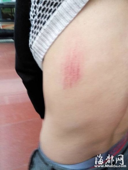 前来运垃圾的环卫车司机背部有明显伤痕 东南网4月22日讯(海峡都市报记者 陈盛钟 文/图)路口的垃圾箱被乱停靠的车辆包围,堆在旁边的建筑垃圾没法清理,前来清运垃圾的环卫司机有些着急。此时,刚好碰到交警在此抄牌,这名环卫司机便上前让交警通知车主将车子挪开,不料惹出祸事。这名环卫司机说,自称是车主的几名男子到达现场后,对自己拳打脚踢,他的一名同事刚好路过,下车劝架,不想也遭围殴,两人身上多处受伤。目前,当地警方已介入调查。 环卫司机:巧遇抄牌交警 车主误解了 被打的环卫司机陈值(化名)今年40多岁,莆田城厢区人,去年到莆田城厢区龙桥城投公司专职开环卫车,他向记者讲述了事发过程。 他说,4月20日下午3点多,接到单位值班负责人通知,说在石室路与龙腾巷交叉路口处发现了一堆建筑垃圾,要赶紧前去清理。于是,自己带了一名环卫工人开着运输车去现场。到了龙腾巷路口时,发现大半条马路都被停在这里的车辆堵住了,无法靠近清理垃圾。恰巧,来了一辆警车,民警对乱停靠的一些车辆进行抄牌,自己就上前询问交警,能否打电话通知车主过来将车子挪开,因为他们要清理垃圾,交警表示可以。 陈值说,民警刚离开,就有几名男子跑过来,指责自己。 原来,对方误以为是自己叫来交警抄牌。他赶紧向几名男子解释,称是刚好碰到交警,并不是故意的。他还表示,如果车子真的被罚了,他愿意代交罚金。不想,这话惹恼了对方,对方冲上前给了陈值几拳。挨打后,自己赶紧跑开,匆忙中手机掉落,一名打人的男子将手机踢到车下,自己回头去捡时又被人踢了几下。 |