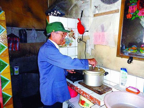 老人在准备做饭 老人住的是老式土房。打开木质房门,房里空荡荡的,二十几平方米的房子只有凳子、椅子、桌子等几件简易家具。一张小桌子上有一个电磁炉,但老人说他大多用柴火烧饭。 墙上用相框挂着的数十张全家人照片,是这个土房子里最惹眼的物件了。 老人很热情地招呼我坐下,我心想,老人大概是寂寞太久了,所以见到有人来,就特别高兴。 谈话间,他指着墙上的照片乐呵呵地告诉我:“这是我的儿子,在城里打工。这是我的2个女儿,已经出嫁十几年了,一个嫁到东庄,另一个嫁到天九湾。” 我问道:“孩子们会经常回来看您吗?”他突然神情变得凝重起来,说话的声音也显得低沉。 他拿出木柜抽屉里几张孩子年少时的照片,告诉我:“年轻时,孩子们小,都在身边,一家人有说有笑的,生活得很开心。儿子常年在外打零工,一个月挣不到2000元,因为挣得少,儿媳嫌弃,两人离了婚。现在,儿子在市区租了房子,一边打工,一边供我孙子在城里学校上学。我孙子今年12岁了,我老婆在城里帮忙打理生活和接送孙子。儿子也让我去城里一起生活,但我考虑到开销本来就大,儿子的工资都不够花,就不想给儿子再添负担了。” 说到女儿,他告诉我,2个女儿刚出嫁头几年,还会经常回来看望他,带些他喜欢吃的水果,给点生活费。现在女儿年纪大了,生活担子也大,回来一次不容易,也就很少见面了,但逢节假日会给他打电话。 睹物思人,他的眼眶突然红了起来。 见此,我也感到一阵酸楚。是啊,其实老人是多么希望一家人能在一起生活,是多么希望有个人能陪他说说话。一个人独自生活久了,对亲人的思念之情,就会格外强烈。 老人转移话题说:“我的头受过伤,医生本来让我每个月吃些补脑安神的药,但我不敢吃,怕花钱。现在,我一个月能拿到政府各种补助500元,就少买菜,省下钱吃点药。” 对此,陈文新向我解释道,陈金林参加过战斗,有《参战人员证》,可以拿到400元补贴;另外,每月还有100元的生活补贴。陈金林老人年纪大了,身体又不好,一个人孤身在山村里生活,真不容易。为此,村里会组织村干部对老人进行帮扶,照顾生活。邻居也经常帮忙,过节时还会请老人到家中一起过。 “家里人不在身边,我就自己照顾自己。”陈金林老人告诉我,为了尽量不麻烦别人,他学着根据季节不同,种一些时令蔬菜,如豌豆、四季豆等。无聊的时候就去给蔬菜浇浇水、除除草。“屋后的桃树已经长果了,熟了就托人带一些给孙子吃”。 在我要离开的时候,已经临近中午。陈金林拿着干柴,准备烧饭。走前,我掀起饭桌上的食罩,只见一碗腌菜和一块豆腐。“您要多保重身体啊!”我心中无限感怀,真心希望他们一家幸福团圆。 (湄洲日报 吴桂勇) |