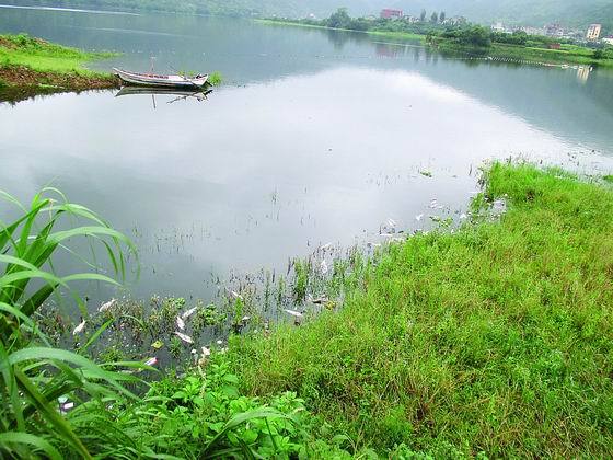 干净的水库一夜之间出现大量漂浮的死鱼,气味刺鼻,令周边村民叫苦不迭。昨日下午,城厢区灵川镇径里村部分村民向本报新闻热线2233580反映这一情况。 昨日下午4时,记者在径里水库看到,水库岸边漂浮着许多死鱼(如图),大小都有二十几厘米长,水库中央还隐约散布着白点。在水库的东北角,有一张渔网横亘中央,将水库分成两部分。村民说,他们是22日发现水库中冒出了死鱼,这些鱼在水面随风飘荡,恶臭扑鼻。那张渔网是一个水产养殖户圈养水库鱼的。 记者随后找到水产养殖户陈国建,他说,养鱼场是老板跟径里水库管理所承包的,养殖有黑鲢鱼、白鲢鱼和鲤鱼约10万尾,他负责养鱼场日常管理。此次鱼出现死亡估计是中毒和缺氧共同作用所致。连日的降雨,将山上的有毒物质冲到水里,雨水又翻动了库底的淤泥,导致库底淤积的氨气溢出,水中含氧量减少,数百尾鱼死亡。 径里水库管理所所长游梦勇说,径里水库的水主要用于灌溉,没有作为饮用水。发现死鱼当天,管理所就马上责令养殖户打捞清理。下一步,管理所还将对水库进行监测,以防其他状况发生。他说,径里水库暂时还没有一套正式的环保应急预案,应对此类突发事件的能力还有待提升,他们已经向上级提出申请,应急预案的制定处于征求意见阶段。(湄洲日报 周凌瀚 吴桂勇 文/图) |