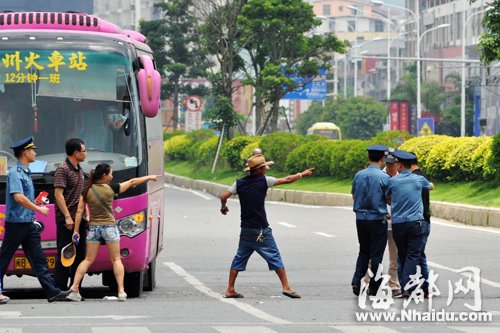 一黑衣男子拉扯记者(白衣男子),两名执法人员上前制止,其他参与揽客的人又冲上前,指着记者大骂 东南网7月2日讯(海峡都市报记者 陈晋 李伟强 马俊杰 文/图) 昨日,海都报莆田版曝光了莆田新汽车站外,“吉祥”客运违规占道揽客,持续3年多,屡罚不止的情况(详见《莆田新汽车站外常有客车占道揽客 屡罚不止》)。昨日上午,海都报派出记者,再次到现场蹲守,发现“吉祥”客运依旧在违规占道揽客。 记者随后跟随莆田市交通综合行政执法支队,一同到现场。违规揽客被查处后,多名男子恼羞成怒,竟当着执法人员的面,围堵记者,阻挠采访,并叫嚣“查什么查,有本事,你叫派出所过来”。 被曝光后“吉祥”客运仍不收敛 昨日上午11时许,记者再次到莆田文献东路与荔园路交叉路口蹲守,发现一辆车身印有“吉祥”二字的客车,停靠在文献东路右车道上,车门处于开启状态,其间有人从路边的绿化带上车,约十分钟后,该车离开。 随后,一辆车牌号为闽BY5529,车身也印有“吉祥”的客车,也在该位置停下。车门打开后,有人就在车辆附近揽客。随后,该车启动,右拐至荔园路,但没多久又出现在文献东路上,在原先的位置停下。 记者随即联系了莆田市交通综合行政执法支队,11时15分左右,莆田市交通执法支队执法车出现在该路口,停靠在客车前面。记者跟随几名执法人员,一同到现场。 与执法人员争执 围堵、威胁记者 执法人员到场后,查扣了该车的道路运输证、驾驶员从业资格证。记者注意到,这辆“吉祥”客车,业主名为“莆田中旅交通运输有限公司”。 违规揽客被查处后,一名头戴草帽的男子恼羞成怒,不仅与执法人员大声争执,还当着3名执法人员的面,多次威胁、拉扯记者。 “查什么查,有本事,你叫派出所过来。”该男子冲记者大声叫喊。其间,男子还怂恿车上乘客一同阻挠执法。随后,多名男子上前围堵、拉扯记者。见记者往执法车辆走去,几名男子紧跟其后,边叫嚣,边准备动手,随后被执法人员制止。记者随即向镇海派出所报案。 接警后,镇海派出所民警赶到现场。看到警车,客车试图沿荔园路往福州方向开。见状,民警拉响警笛,追上客车,将司机驾驶证扣下。执勤民警告诉记者,该路口有警方监控,该客车是否违规占道揽客,可通过视频监控调取证据,如果运管执法部门需要,他们可以提供视频佐证。该民警表示,随车人员的拉扯行为尚未达到立案标准,但这些人的行为已被记录在案,如果再有这类行为,将进行严处。 违规揽客证据确凿 将处千元以上罚款 执法部门多次上路开展执法行动,“吉祥”客运站外揽客,为何仍屡禁不止? 现场执法人员介绍,交通执法支队不像“便衣执法”,执法车、执法人员必须有明显的“交通执法”标志,执法期间还要主动向被执法方表明身份,因此,每次上路执法,这些站外揽客者远远地就可以看到执法车辆,并在第一时间离开现场,或停止违规行为,很难搜集到违规证据。 “今年能抓到他们,是因为刚好有一辆货运车挡住了执法车辆,这些人员没能及时发现,才能现场执法。”执法人员告诉记者,莆田新汽车站附近的违规揽客者十分狡猾,如果没有确凿证据,这些揽客者拒不承认占道揽客行为,因此收集证据是他们执法的主要内容之一。 记者获悉,执法部门将调取现场监控录像,并要求当事人做笔录,在确定证据后,将对这些人员处以1000元以上、3000元以下的罚款。 □记者手记 不法者何以如此嚣张? 当运管执法人员、民警离开现场后,本报另一路记者留守观察。接近12点,一辆车牌号为闽BY5176的“吉祥”客车,又在该地点开门揽客,此时距执法人员离开现场不到半小时。 客运车辆站外揽客,被执法人员逮个正着,随车人员竟对执法人员叫嚣,并多次威胁拉扯记者。不法者何以如此嚣张?其实,这些站外揽客人员之所以“理直气壮”,原因无非有几个:一、他们认为,揽客是你情我愿的事,既然乘客需要,为什么不能提供?二、他们看准了监管的漏洞,看准了运管人员取证难,自信能成为“漏网之鱼”。三、违规成本低,查处一下罚几千元,他们不在乎。 对于这些藐视执法、频繁违法的站外揽客人员,部门真的就无计可施?其实,取证难,运管部门可以与警方合作,调取路口的监控视频,搜集站外揽客的证据;违规成本低,政府也可以出台新法规,加大处罚力度,重典治违规。只要多部门联合行动,加大执法力度,站外揽客这棵“毒草”一定能被铲除。 |