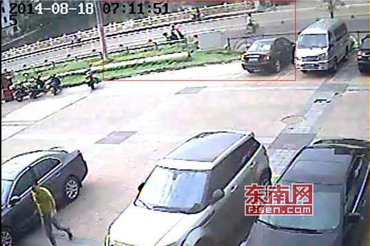 肇事者跟受害者出现的画面(红色方框),右边骑车的为侯大爷