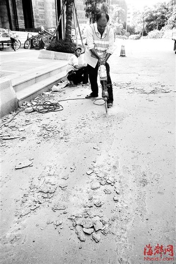 路面上的水泥疙瘩非常顽固,要动用冲击钻清理 东南网9月11日讯(海峡都市报记者 李伟强 马俊杰 文/图)近日,记者在莆田城厢区东园西路安福段辅道看到,4位工人用锤子和机械吃力地清理路面上的水泥疙瘩。记者发现,该路段附近有刚建成不久的房地产项目,辅道上水泥疙瘩随处可见,长约20米的辅道上就有近10平方米的疙瘩,有些路段的疙瘩高出路面三四厘米,路人一不小心就会被绊倒。随后,记者走访了荔城大道、东圳路、延寿街等多条市区主要交通道路,发现这些道路的主干道或者辅道上都不同程度存在“长瘤”的现象。 莆田市政工程维护管理处工作人员介绍,路面上的水泥疙瘩均为途经的水泥搅拌车“滴撒漏”造成的,由于“滴撒漏”企业和监管部门没有及时进行清理,导致水泥凝固,牢固地附着在路面上,长期以来不见有责任部门前来处理,给市民出行安全带来严重影响。 “虽然不是市政的职责,但考虑到市民出行既不方便又不安全,还是要主动去做。”该工作人员说,根据对中心城区十多条主要交通道路的初步排查,估计有近千平方米疙瘩需要清理,前不久市政已专门请人对这些水泥疙瘩进行有针对性的清理,尽快恢复路面平坦通畅。该工作人员表示,根据工作进度,短期内可完成中心城区主干道和辅道的路面水泥疙瘩清理。 |