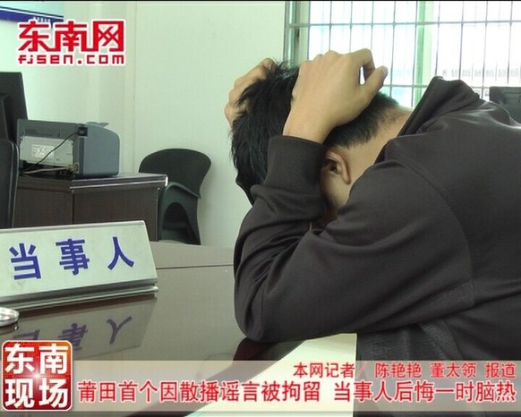 ![]() | 莆田首个因散播谣言被拘留 当事人后悔一时脑热 |