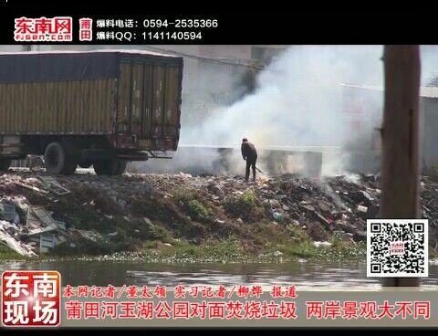 莆田河玉湖公园对面焚烧垃圾 两岸景观大不同 |