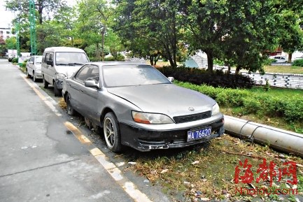 一小区停车位上停着一辆“僵尸车”(中) 东南网4月9日讯(海峡都市报记者 陈晋/文 马俊杰/图)昨日,家住莆田市丰美小区的林先生拨打海都报新闻热线反映,小区周边路段都被“僵尸车”长期霸占,有的一停就是两三年,不仅占用车位,车辆本身还成了垃圾箱。 小区业主:小区车位已难求却有废车“霸位” “你看这辆车,在这里停放了3年都没人管,车里全是垃圾,不仅不容易清扫,也很容易滋生蚊虫。”林先生家住丰美小区,昨天,记者来到镇海中街丰美小区,在小区外的一个车位上,看到了这辆被称为“陈年僵尸”的老牌灰色轿车,车牌号为闽A76620,只见车身不仅多处“掉皮”,车轮胎也已干瘪。 记者近距离观察,发现车内堆满了废弃书包、易拉罐、纸片、饮料盒、砖头等垃圾,在这个停车位十分紧张的小区,这辆“僵尸车”显得十分扎眼。 随后,记者在小区周边转了一圈,发现不少“僵尸车”停在车位上,既占用车位,又堆积垃圾。