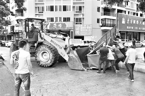 城管工作人员清理占道的铁皮制摊位 东南网8月20日讯(海峡都市报记者 陈小芳/文 马俊杰/图)“整洁的主干道经常被摊位干扰,影响道路交通。”昨日,莆田城厢区城管龙桥中队在东园路对占道的摊位进行现场清理。据了解,半个月前,部门已通知摊主自行撤离,但摊主未自行撤离。城管部门表示,此次清理希望能给摊主一个警示,下一步干道的摊位清理力度会更大。 居住在东园路上一小区的王先生告诉记者,该路段占道摆摊的现象已存在一段时间了。王先生介绍,很多摊位都摆放在主干道两侧,沿线小区大门附近也是。他透露,很多摊位都是晚上出现,白天撤离。“可最近一段时间,这些摊位白天也放在原地,等着晚上来开张。”王先生表示,东园路作为市区主干道,占道摆摊现象严重影响城市形象,同时,因为这些摊位乱摆放,导致交通混乱,高峰期堵车已成常事。 昨日上午,城厢城管龙桥中队对现场四个铁皮制摊位进行清理。工作人员介绍,每个摊位都有数百斤重,此次为城管联合街道执法。据统计,该路段上共有几十个铁皮制摊位,占道摆摊已经严重影响了该路段交通。工作人员说,大约半个月前,部门已通知摊主自行撤离,“但是这些摊主一直未行动,所以部门决定现场清理。” |