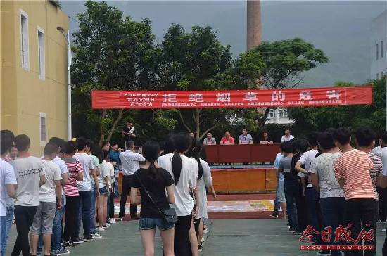 东南网莆田6月3日讯(今日城厢 报道)5月31日是第29个世界无烟日。为遏制烟草的流行,向广大师生提倡“不吸烟”的健康生活观念,让更多人特别是青少年远离烟草危害,养成良好文明的生活习惯,城厢区卫计局联合市健康教育促进中心、区教育局、区疾控中心、华亭卫生院等单位,在莆田科技职业技术学校举行大型校园控烟签名及有奖竞猜活动。 本次宣传活动以“无烟校园,我们在行动”为主题,形式新颖多样。活动现场,区疾控中心的工作人员对全校师生进行如何控烟方面的知识教育,并列举了吸烟对心血管、呼吸系统的影响系列实例,告诫学生吸烟不仅危害吸烟者自身健康,而且殃及他人,祸及后代。尤其对妇女和青少年的健康损害最为严重,发出了“拒吸第一支烟”的忠告;随后,一名学生代表宣读了校园禁烟倡议书,全校师生集体一起做“拒绝烟草”的宣誓,并在“拒吸第一支烟 做不吸烟的新一代”的大红条幅上,庄重地签上了自己的名字。