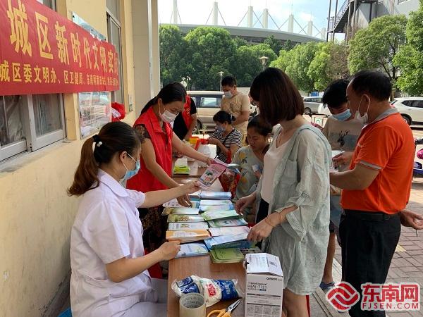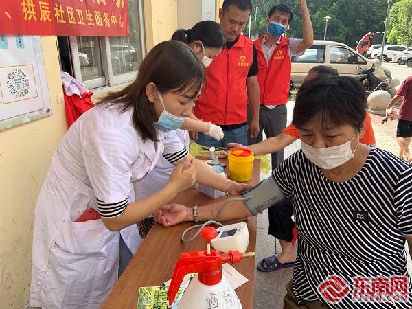 医务志愿者为辖区居民测量血压 东南网莆田7月7日讯(通讯员 陈一丽 本网记者 李剑军 文/图)为深入开展新时代文明实践志愿服务活动,7月7日上午,莆田荔城区新时代文明实践中心开展以“凝聚民心、服务群众、传播文明、助力振兴”为主题的新时代文明实践“助医助残”志愿服务活动,为辖区老人提供义诊服务。