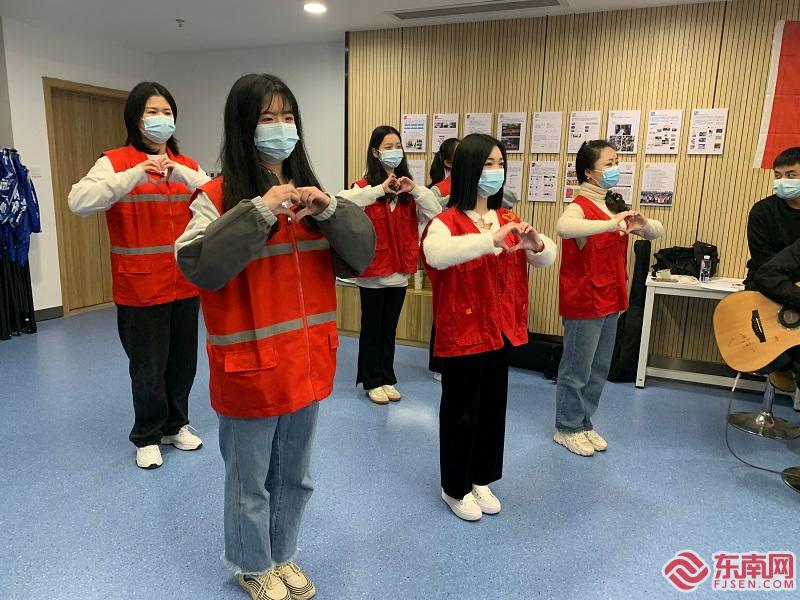志愿者表演手势舞 直播伊始,7名身穿红色马甲的志愿者为观众带来了精彩的手势舞,优美的旋律、暖心的音乐瞬间把直播间的氛围拉满。音乐学院的学子和仙游籍歌手轮番上阵,用歌声感谢一线的医护工作者,也为隔离区的同学们打气。 “祝你生日快乐,happy birthday to you……”直播中,一位仙游私立一中的同学表示今天正好是他的生日,志愿者们立即组织起来,送上生日歌,让其过上了一个特殊温馨的生日。 “我们举办这个活动的初心是以‘音’传情,‘艺’齐抗疫,给隔离点的同学们一些陪伴,希望他们能够健康平安,早日重返校园。”音乐学院的教师李国贞在接受采访时表示。 当晚的直播活动持续近2个小时,观看人数达8675人次,获9.1万次点赞。 |