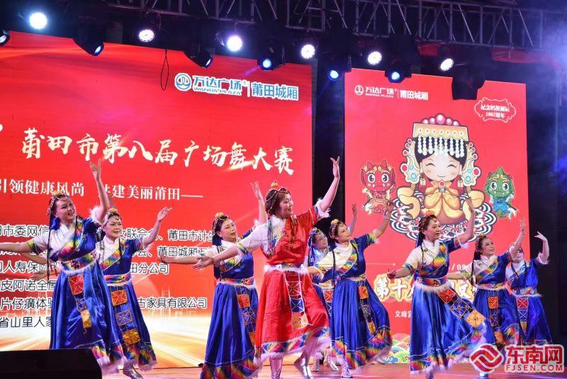 广场舞大赛现场 东南网莆田5月7日讯(本网记者 蔡蓉梅 李剑军 文/图)5月6日晚,“皮阿诺杯”莆田市第八届广场舞大赛总决赛在莆田城厢万达广场举行,10支队伍同台“炫舞”,舞出了莆田市民的良好精神风貌。东南网莆田站对本次赛事进行全程网络直播。 决赛现场,各参赛队自编自演的广场舞竞展风流。《好一朵美丽的茉莉花》《心中的玫瑰》《渔家姑娘》以舞绎情,其优雅柔美的翩跹舞姿韵味十足;《时代感》音乐明快,律动感强,瞬间拉近了与观众的距离;独具特色的藏族舞蹈《天路》生动演绎少数民族的风情,展现了传统民族文化的魅力……参赛选手们将舞姿与旋律完美融合,或柔情婉约,或动感十足,赢得了现场观众的热烈掌声和喝彩声。