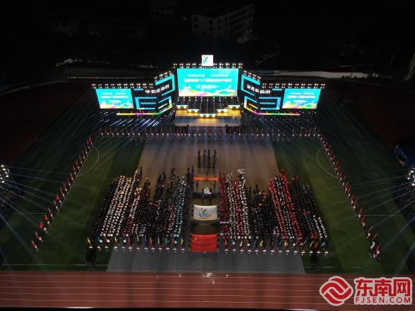 开幕式现场 东南网莆田11月22日讯(本网记者 卢建伟 文/图)点燃运动激情,逐梦魅力仙游。11月21日晚,莆田市仙游县第十六届运动会在县体育中心开幕。东南网记者了解到,本届县运会历时90多天,来自全县各(乡镇)街道和各条战线上的27支代表队、1819名运动员,将在11个大项、127个小项的比赛项目中尽展风采。 开幕式现场,国旗仪仗队迈着坚毅整齐的步伐率先出场,会旗、会徽、会标方队紧随其后,裁判员代表团和27支运动员代表团方阵意气风发入场,纷纷向观众们挥手致意,引起现场观众掌声不断。