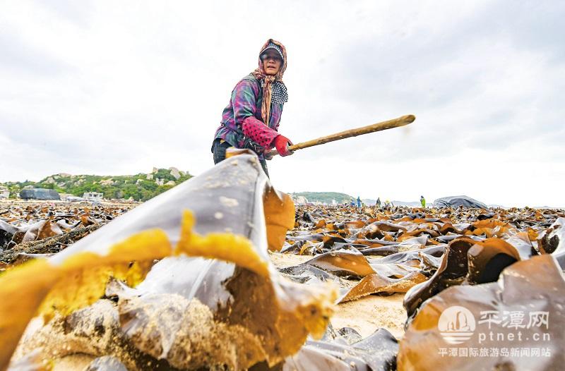 新鲜海带整齐地摊开晾晒在沙滩上,场面十分壮观。 5月,是海带丰收的季节。9日,迎着晨光,金井片区华东村海面上一派繁忙景象。 渔船的发动机不停轰鸣着,船只马力全开往来穿梭,船上的养殖户正在有序地采收海带。只见一名渔民在船头将浮标上的海带解下,挂在长绳一头的铁钩上,站在船尾的渔民拉住长绳的另一头,把绳子绕在起网机上。随着起网机的转动,一大串海带被迅速地从海里拉出,另一名渔民把海带从铁钩上解下后铺在网里。没过多久,一艘艘满载新鲜海带的船只朝着岸边驶去。船上的渔民互相讨论着采收的情况,脸上洋溢着兴奋的笑容。 岸边,趁着晴好天气,工人们两两协作,将海带从铲车上拖至晾晒区,赶在天完全透亮之前,开始晾晒工作。刚从海上捞出的海带个头粗壮,在阳光照射下晶莹顺滑。工人们将新鲜海带整齐地摊开晾晒,一条条,一片片,沙滩上满满的都是又肥又大的海带,场面蔚为壮观。“我们已经连续采收好几天了,一般凌晨三四点就出海采收了。”一名养殖户介绍道,这块海域温度适宜、水质清澈,出产的海带长而宽,肉质肥厚,品质优秀,倍受市场欢迎。 据悉,今年平潭海带养殖面积约1.5万亩,主要集中在敖东海域。今年海带生长良好,产量较高,预计全部采收结束还要10余天。 (江信恒 林君斌 陈名峰 文/摄) |