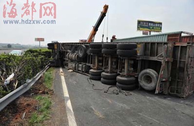 沈海高速南安段货车侧翻“霸占”车道