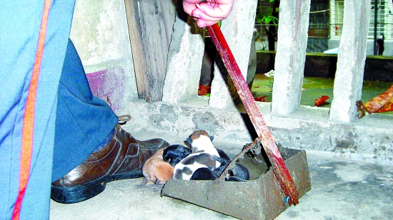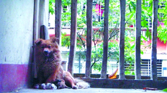 早报讯 (记者 吴丽娇 文/图)“二楼转道有一只流浪母狗正在哺乳,人一接近,就乱叫,老少出入都提心吊胆,怕被咬伤,这可怎么办?”昨日下午,福建省第一公路工程公司宿舍区的赵女士致电早报热线,称3幢2楼转角处,一母狗3天前生下4只狗崽,“蜗居”于此,居民上下楼心慌慌。