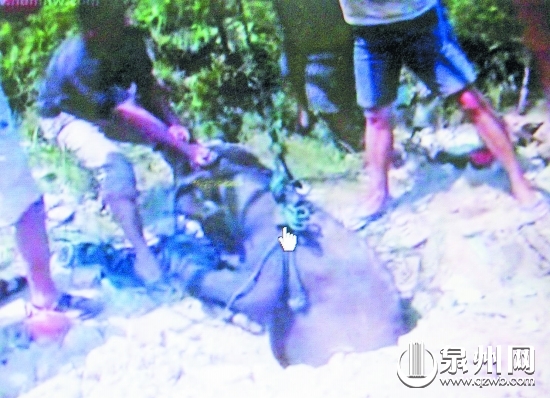 牛掉进无盖窨井3天 主人支起三脚架将牛吊出