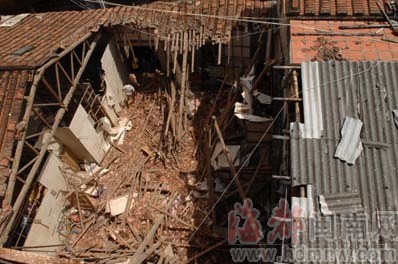 东南网-海峡都市报9月12日讯(本网记者 林小明 谭青 文/图)噼里啪啦一阵响后,杨农朝惊醒,还以为地震了,眼前都是灰尘,屋顶没了。他听到儿子在大喊:“爸爸,快救我!”飞奔过去,发现儿子被埋在一堆1米多高的瓦砾下……
