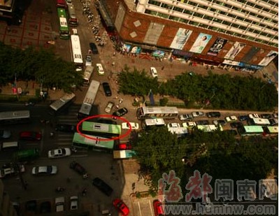 东南网-海峡都市报9月29日讯(本网记者 陈建辉 黄谨 文/图) 三四十辆车堵在泉州市区泉秀街与淮秀路交叉口(客运中心站前)无法动弹,尖锐的喇叭声和叫骂声此起彼伏,而造成这一情况的罪魁祸首,仅仅是一辆公交车和一辆小轿车发生了轻微的刮擦。昨日中午12时许,在造成大塞车近1小时后,经记者报警,交警赶到现场将两辆事故车劝离现场,才使该路段的交通恢复了正常。