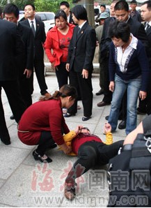 “你们把我们都抓走好了,找我儿子干吗?”吴连城的母亲嘴里一边骂法官,一边索性倒在地上耍起泼来。