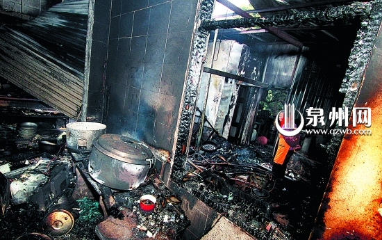 事发后,消防官兵赶来将爆炸引发的大火扑灭。记者看到,灶台、桌椅都已被烧毁,天花板和卷帘门被炸坏。店门口放着6个被抢出来的液化气瓶,发生爆炸的液化气瓶倒在旁边一处空地里,炸开了一个大口。