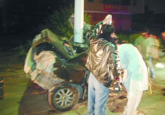 小车撞路灯2人亡 现场血淋淋借手机的人却不见了