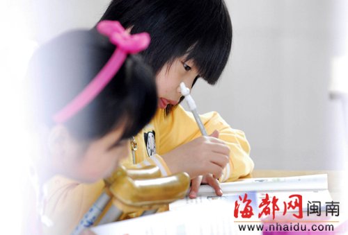 东南网-海峡都市报4月15日讯(本网记者 华健 陈世国 文/图)坐在教室,认真听讲,还不时举手回答老师的提问……昨日上午,石狮社会福利院工作人员推着轮椅,将小思浓送至石狮永宁镇沙堤小学上学。