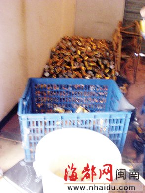 东南网—海峡都市报5月4日讯(本网记者 林淑芳 文/图) 色素加香精就能调制出一罐红牛饮料?昨日下午,根据市民举报,鲤城工商执法人员在金龙街道依法取缔了一家制造假红牛饮料的窝点。