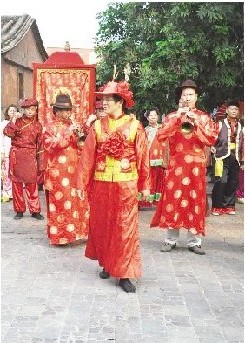 东南网-海峡导报5月10日讯(本网记者 郭冰德 文/图)昨日下午,泉州市鲤城区浮桥街道坂头社区广场上唢呐、锣鼓声响彻四周,由泉州笋江艺术团承演的闽南仿古婚庆表演在这里精彩上演。此次表演将是该团赴金门前最后一次大规模彩排活动,这些“婚队”将到金门战地“迎亲”。