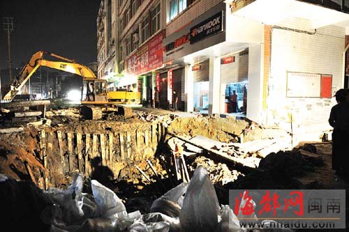 - 2011-04-22福州交通路和白马中路交叉口 马路塌陷露出大坑