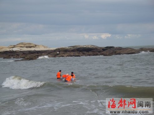 东南网-海峡都市报6月12日讯(本网记者 华健 邓志新) 昨日下午5时,受今年第3号热带风暴“莎莉嘉”影响,石狮外海海上风力达到8级以上。在石狮黄金海岸附近一礁石上,在石狮打工的文某和女友游某在礁石上游玩,不料却被迅速上涨的海水围困。石狮永宁边防派出所官兵经过一个多小时的努力,迎着风浪将他们救回。
