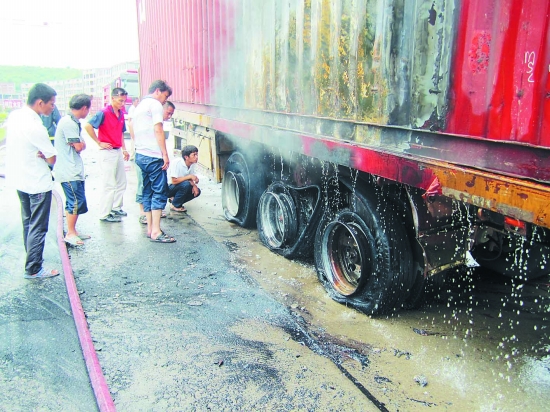 挂车司机认为车轮由于摩擦导致爆胎自燃