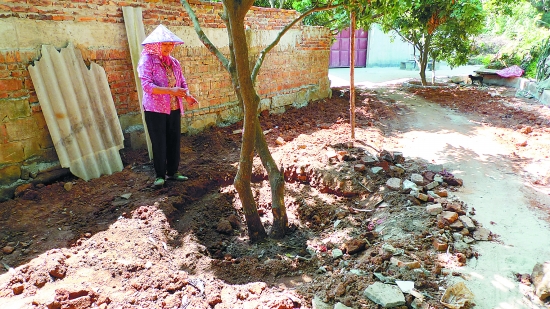 昨天上午,一提起自家龙眼树遭人用硫酸毒杀一事,魏美英仍然气愤不已。她说,前几天吃过晚饭,准备外出办事时发现,自家屋外一棵龙眼树四周的泥土,被人挖了出来,并散发出一股刺鼻气味。魏美英叫来家人仔细查看,发现龙眼树四周未被挖出的泥土变成黑色。魏美英的儿子魏先生反应了过来:龙眼树遭人浇浓硫酸,化学反应后,龙眼树四周的泥土变成了黑色。