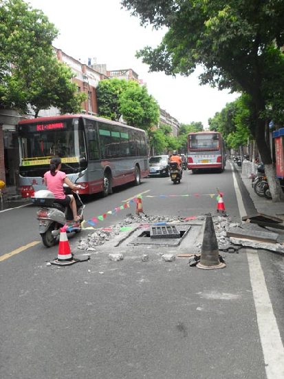 泉州市区中山路换井盖砌斜坡 井盖改造占路面(图)