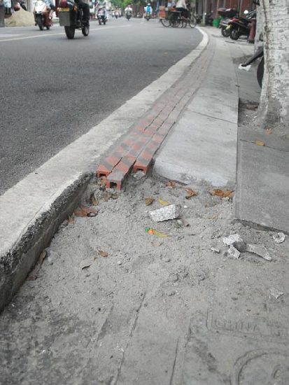 路旁修斜坡,月底才能完工。