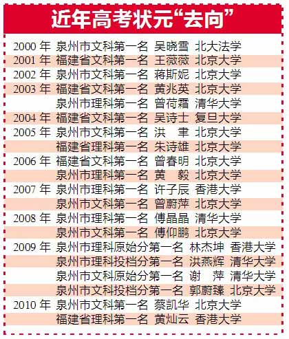 今年泉州高考状元 清华北大各揽两人(组图)