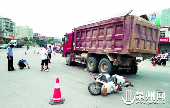 昨日8时许,国道324线惠安段往东园方向的杏田路口,两辆摩托车发生碰撞后,被后面的一辆土方车撞上,其中一辆摩托车被卷入土方车底部,车上的一男一女遭碾压,不幸身亡。